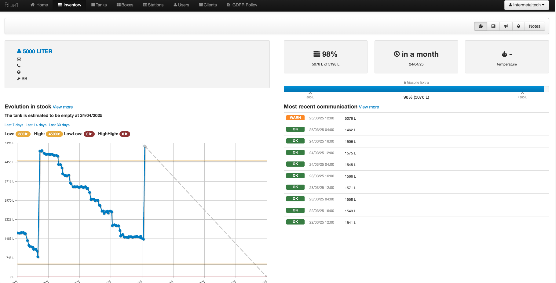 Wij monitoren continu het brandstofverbruik op jouw werf, zodat we tijdig kunnen bijsturen, optimaliseren en stilstand vermijden.