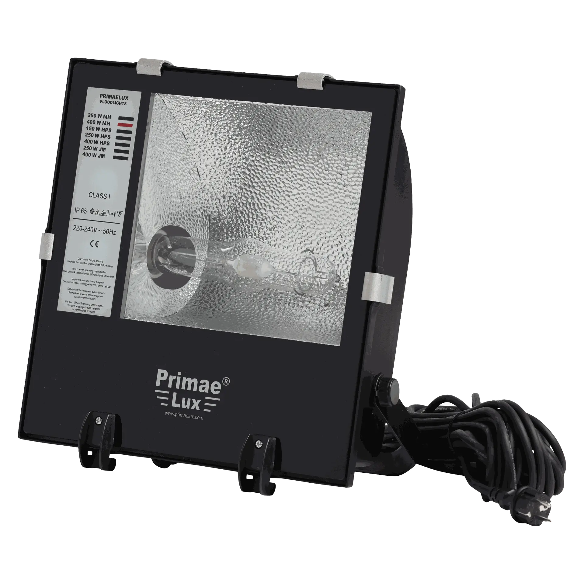De HQI-T 400 W armatuur biedt krachtige verlichting met een hoog rendement en een minimaal energieverbruik. Dankzij zijn solide aluminium behuizing, slagvast ontwerp en waterdichtheidsklasse IP67 is deze armatuur perfect bestand tegen de zwaarste omstandigheden. Dankzij de Klasse I-classificatie is de lamp buitenshuis veilig inzetbaar, bijvoorbeeld op bouwplaatsen, bij torenkranen of gevels. Voorzien van 15m kabel.