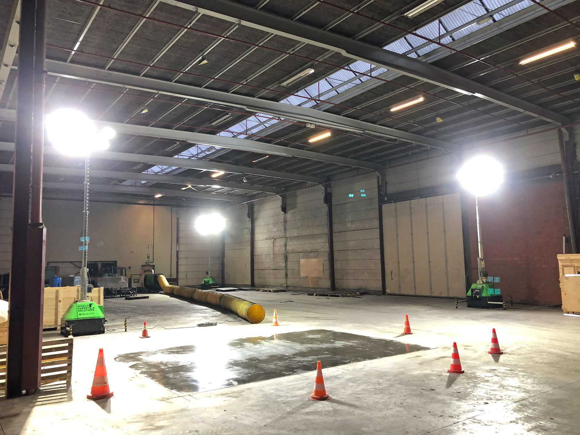 Bij AGP eGlass | Soliver ondersteunen we de productieactiviteiten met een complete tijdelijke energieoplossing. Om een tekort aan stroom, verlichting en verwarming op te vangen, leverden we gedurende enkele maanden een combinatie van stroomverdeling, lichtmasten en mobiele verwarming op de site.