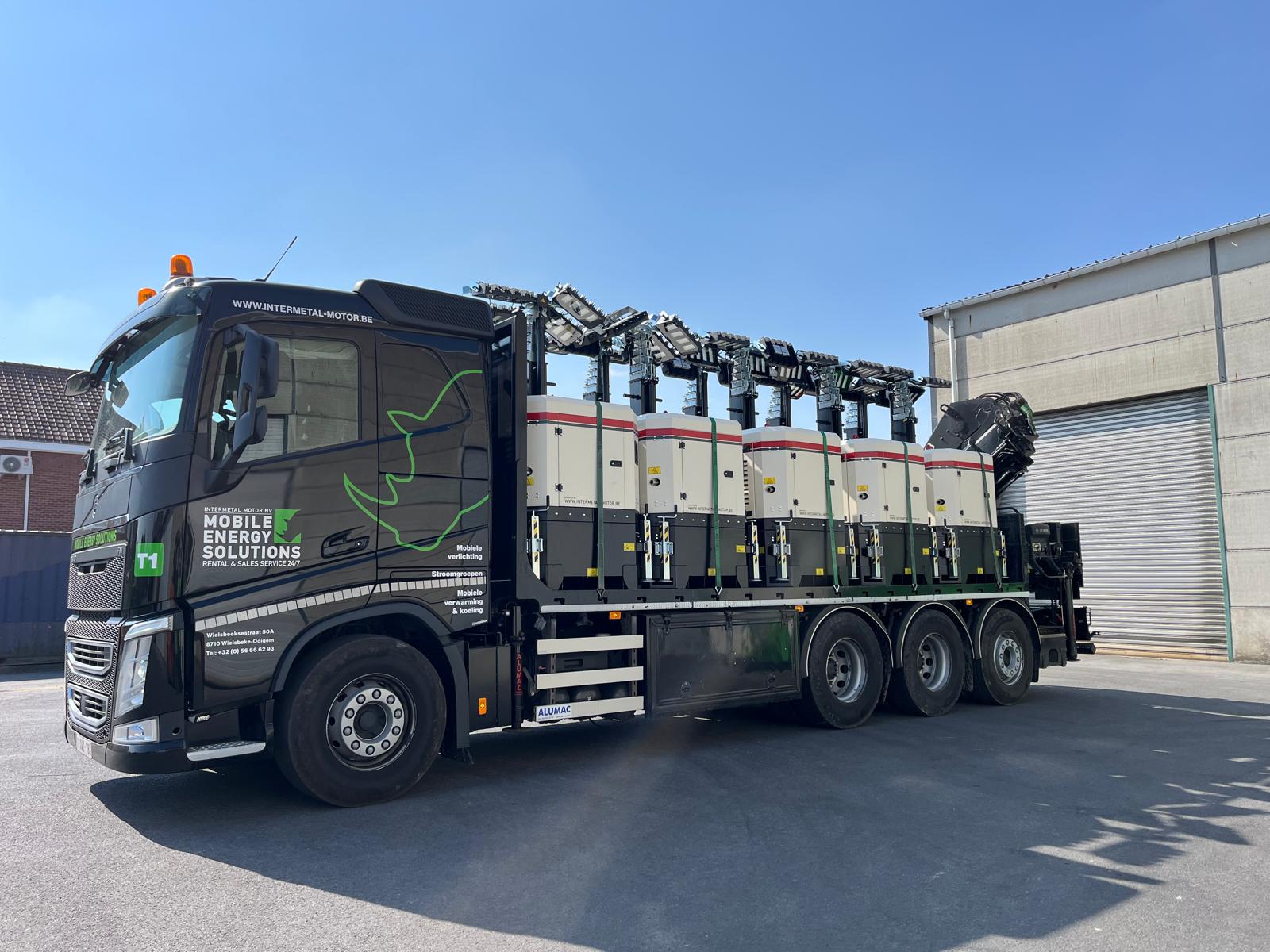 Op heel wat werven worden onze stroomgroepen van 13 tot 135 kVA en onze lichtmasten dagelijks ingezet om machines, verlichting en werfinstallaties van energie te voorzien. Daarnaast levert Intermetal Motor ook grote vermogens, zoals een 1015 kVA-installatie voor de betoncentrale in Harelbeke, een cruciale schakel in de dagelijkse productiecapaciteit op deze site.