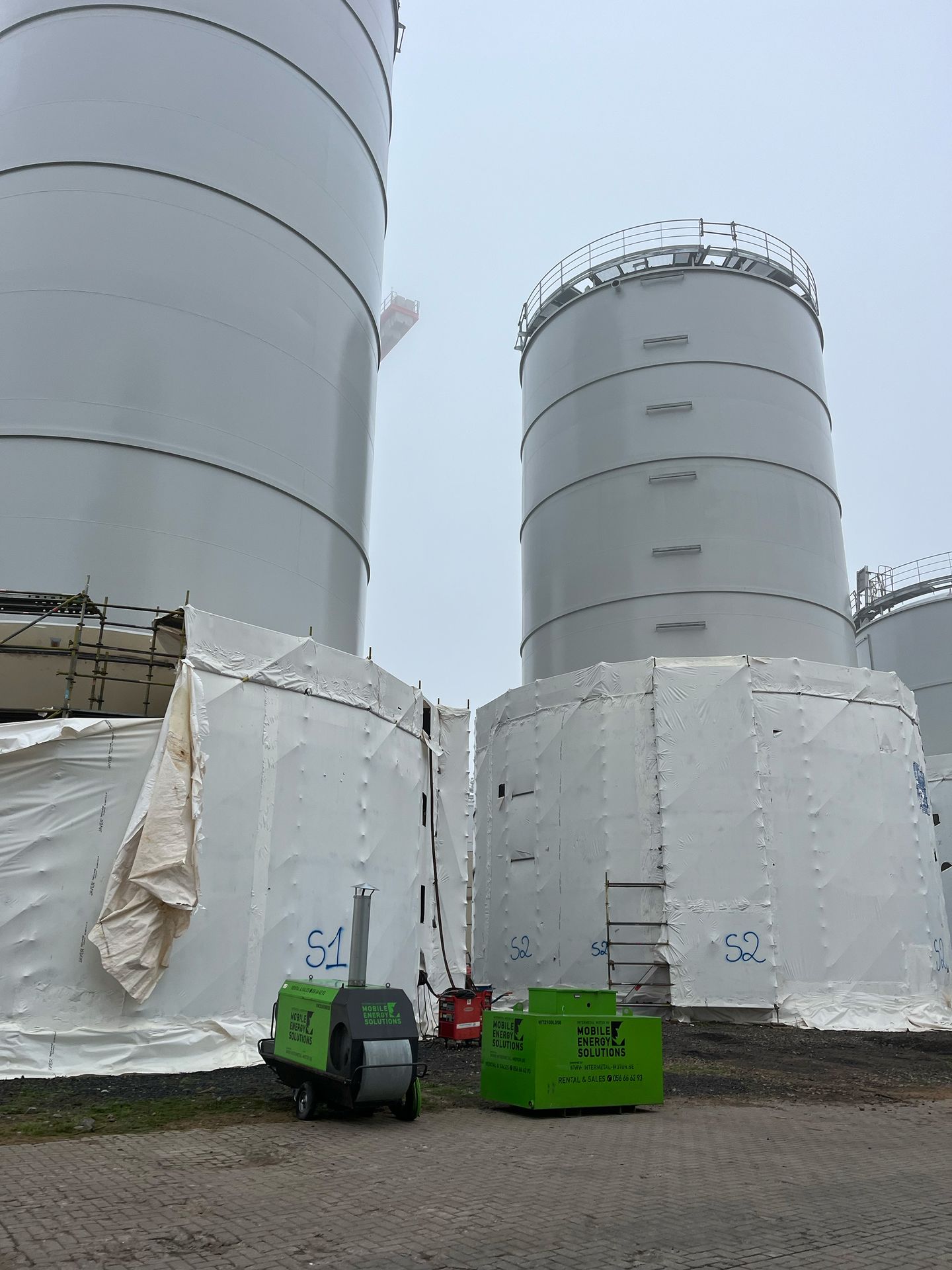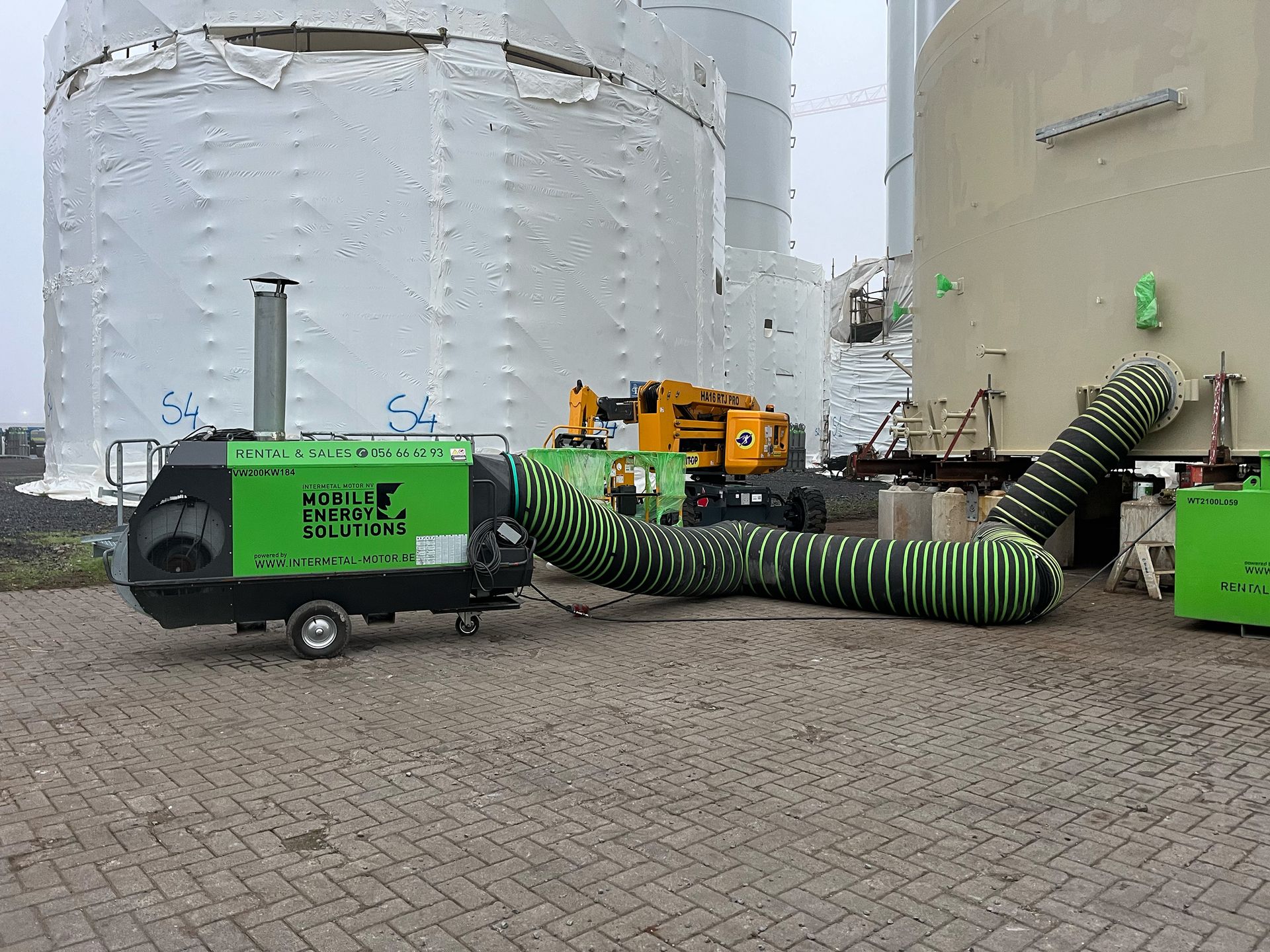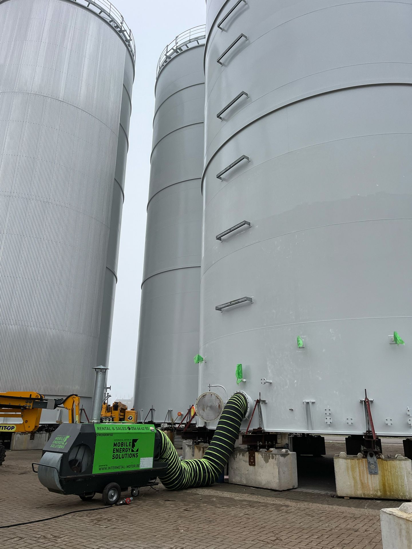 Voor een project van Engicon in Oostende leverde Intermetal Motor een krachtige en betrouwbare tijdelijke verwarmingsoplossing om de binnentemperatuur in een opslagtank op het vereiste minimumpeil te brengen.