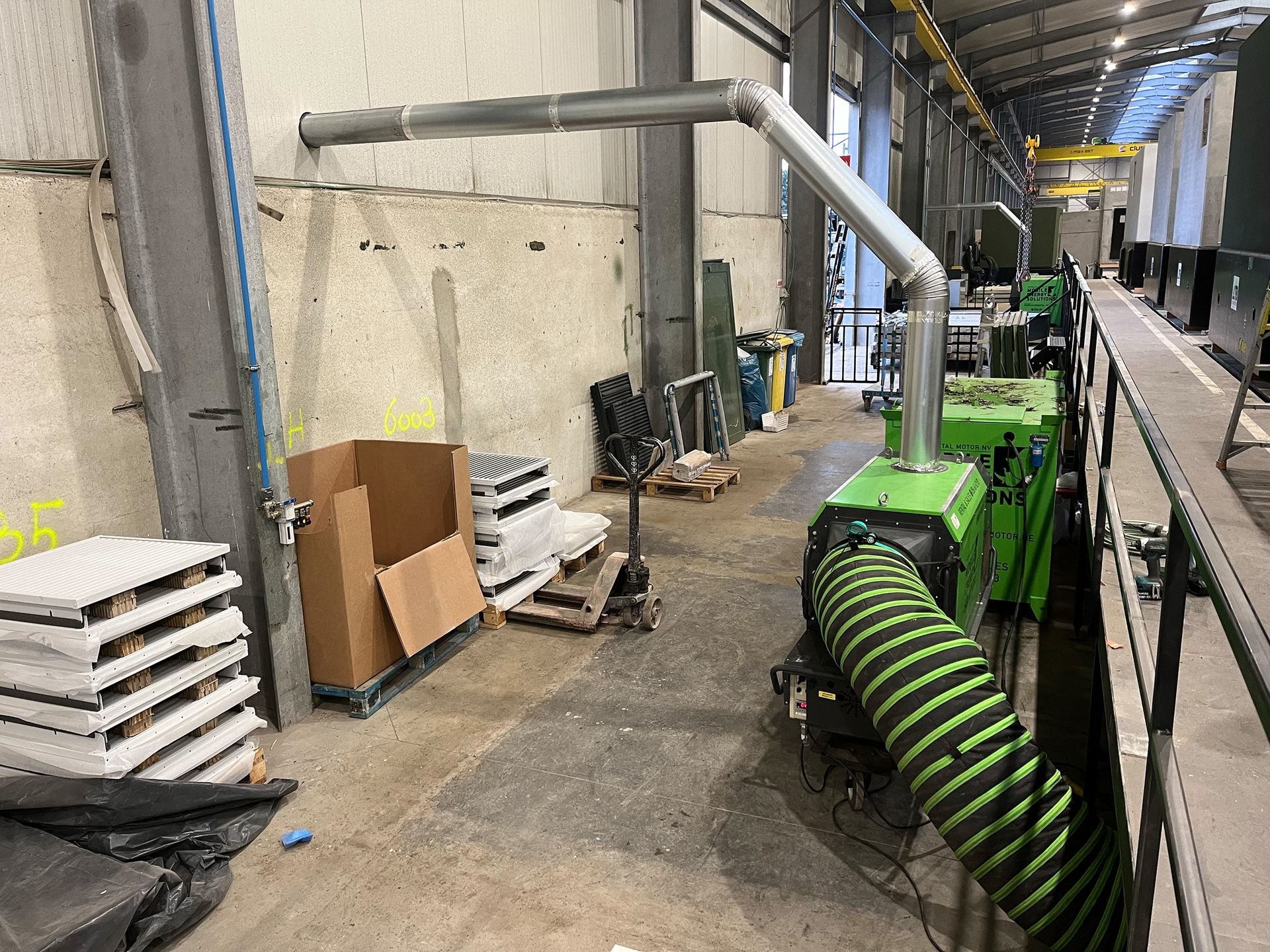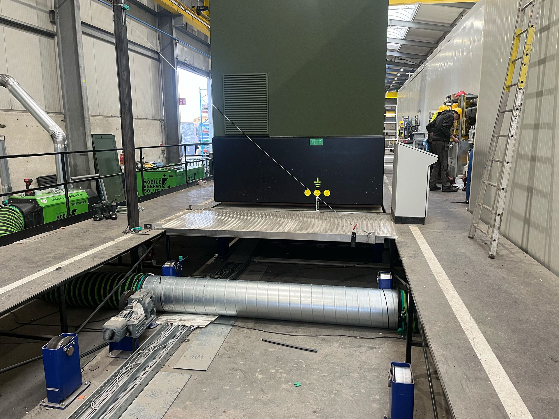 Hiervoor werden twee mobiele verwarmingsunits van 65 kW geplaatst, die zorgen voor een stabiele en efficiënte temperatuurregeling binnen beide droogkamers.