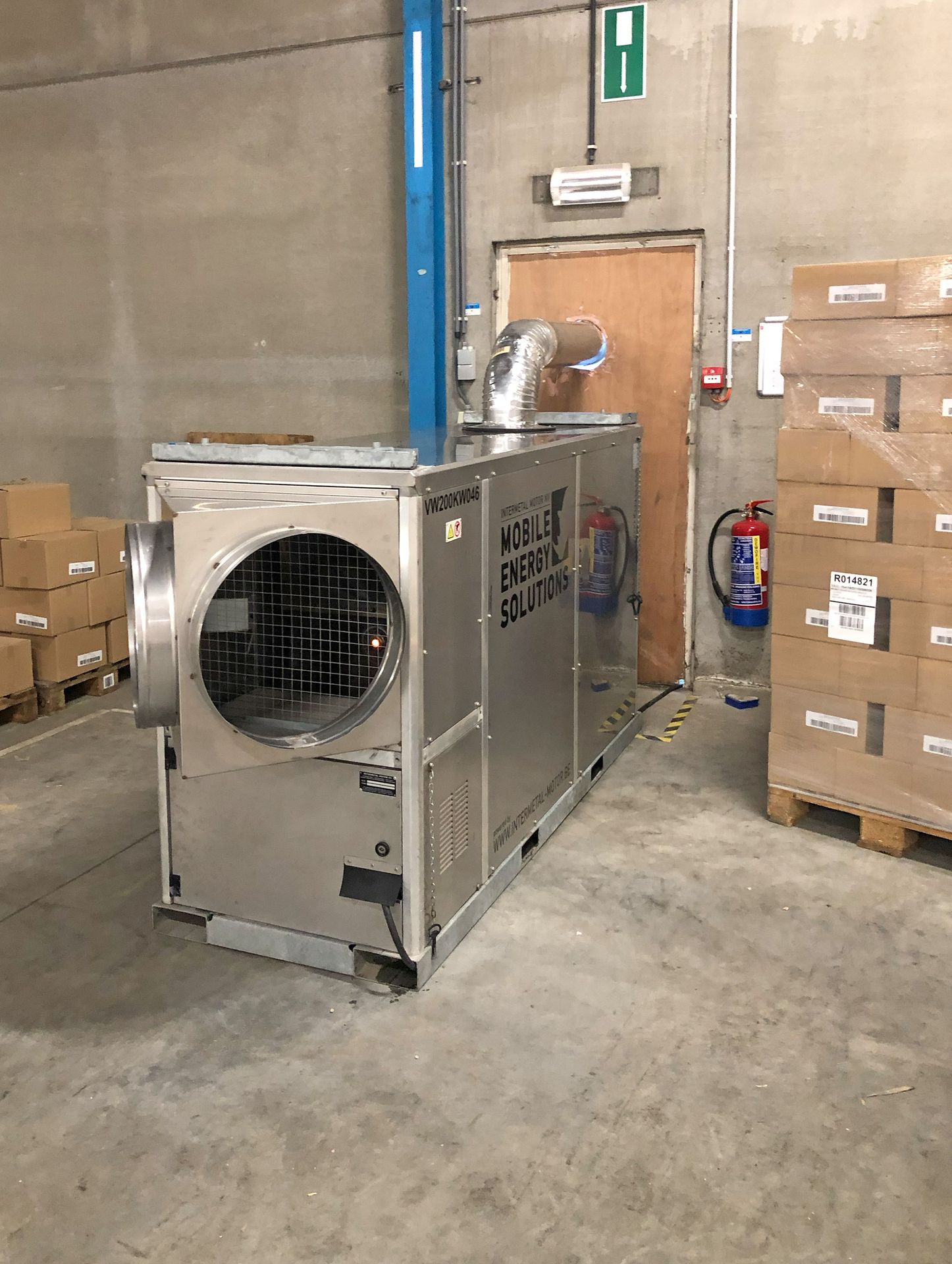 Voor onze klant Poppies voorzien we al meerdere jaren een efficiënte verwarmingsoplossing voor hun magazijn. Om de vereiste minimumtemperatuur te behouden voor de correcte opslag van hun producten, plaatsen we telkens twee mobiele verwarmingsunits van 200 kW.